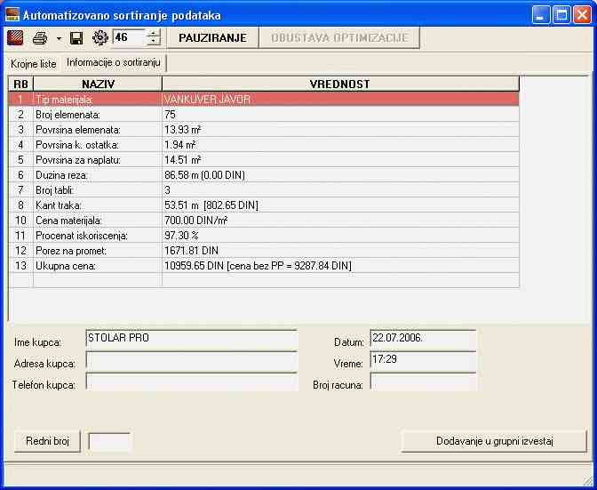 Optimizacija i vođenje magacina radnih ploča i frontova - opciono